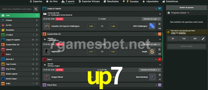 O up7 oferece uma grande seleção de opções de apostas em e-sports com probabilidades competitivas